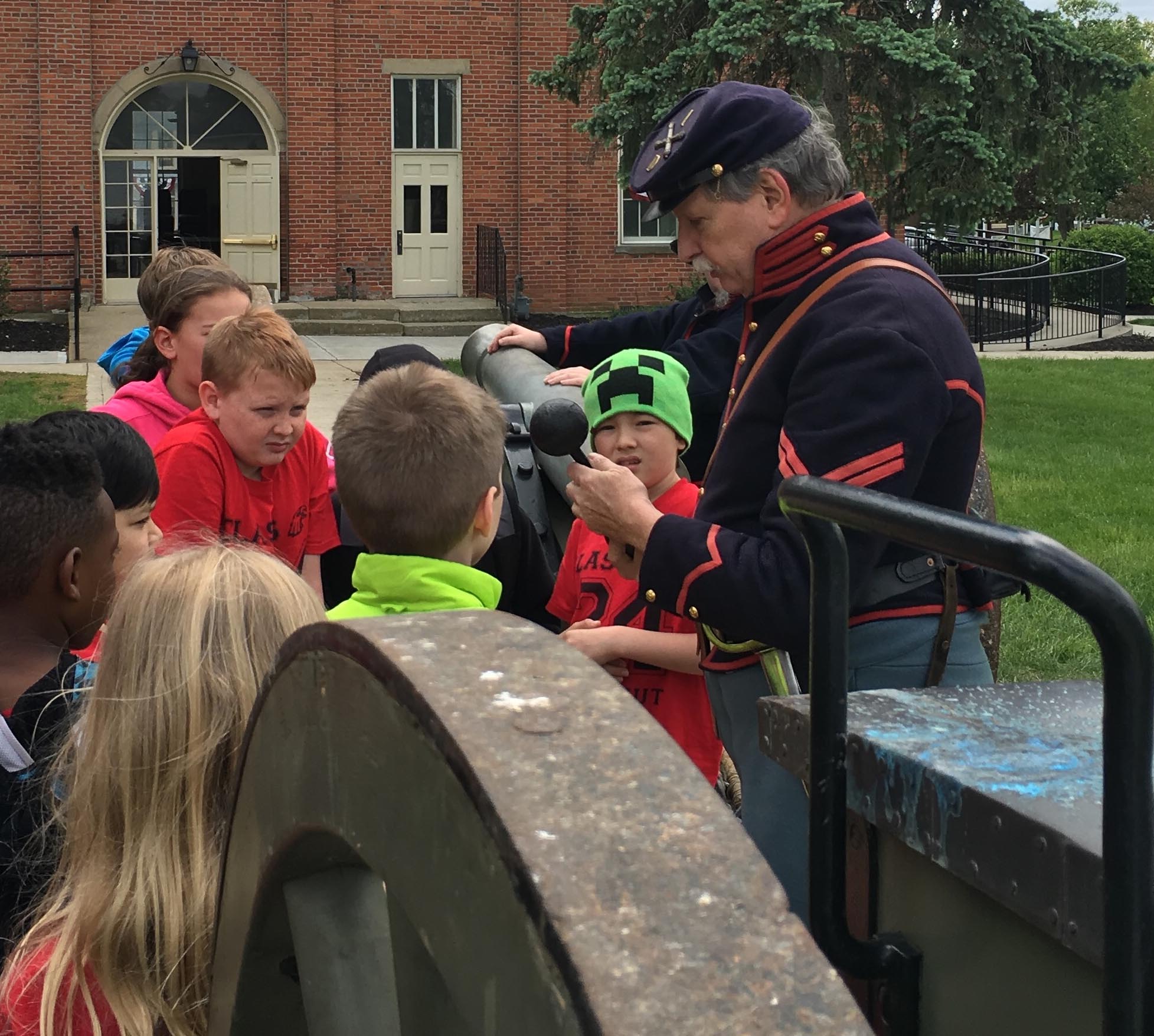 John Lieurance shows students the different kinds of ammunition fired in cannons during the Civil War | |||||