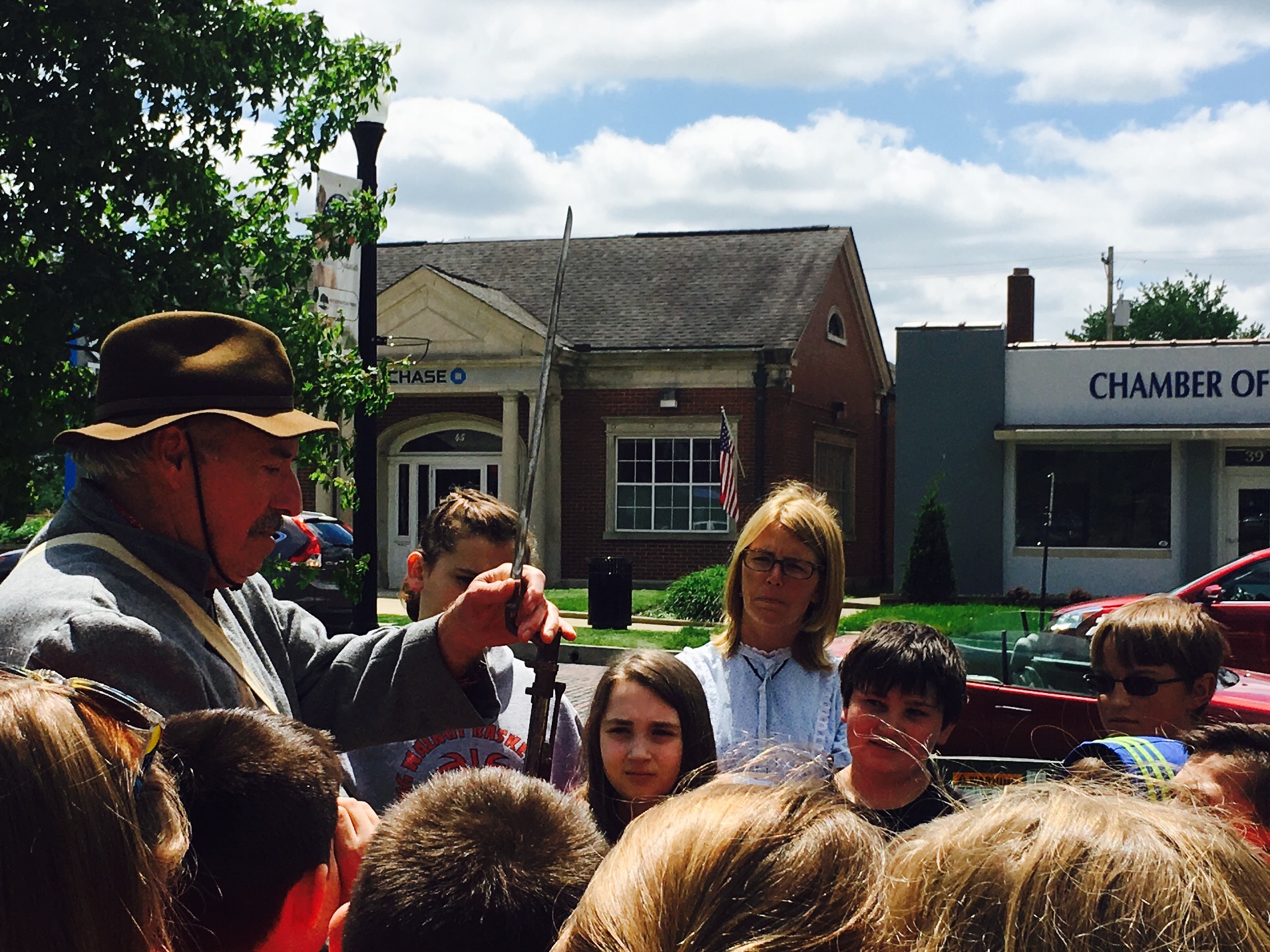 Smell of Ohio coal from the blacksmith's forge and the sounds of cannon fire and riffles being shot let Sunbury businesses and visitors relive parts of the Civil War while over 560 students and adults spent 2 hours on Sunbury square learning about the Civil War from different perspectives Friday, May 13, 2016. |