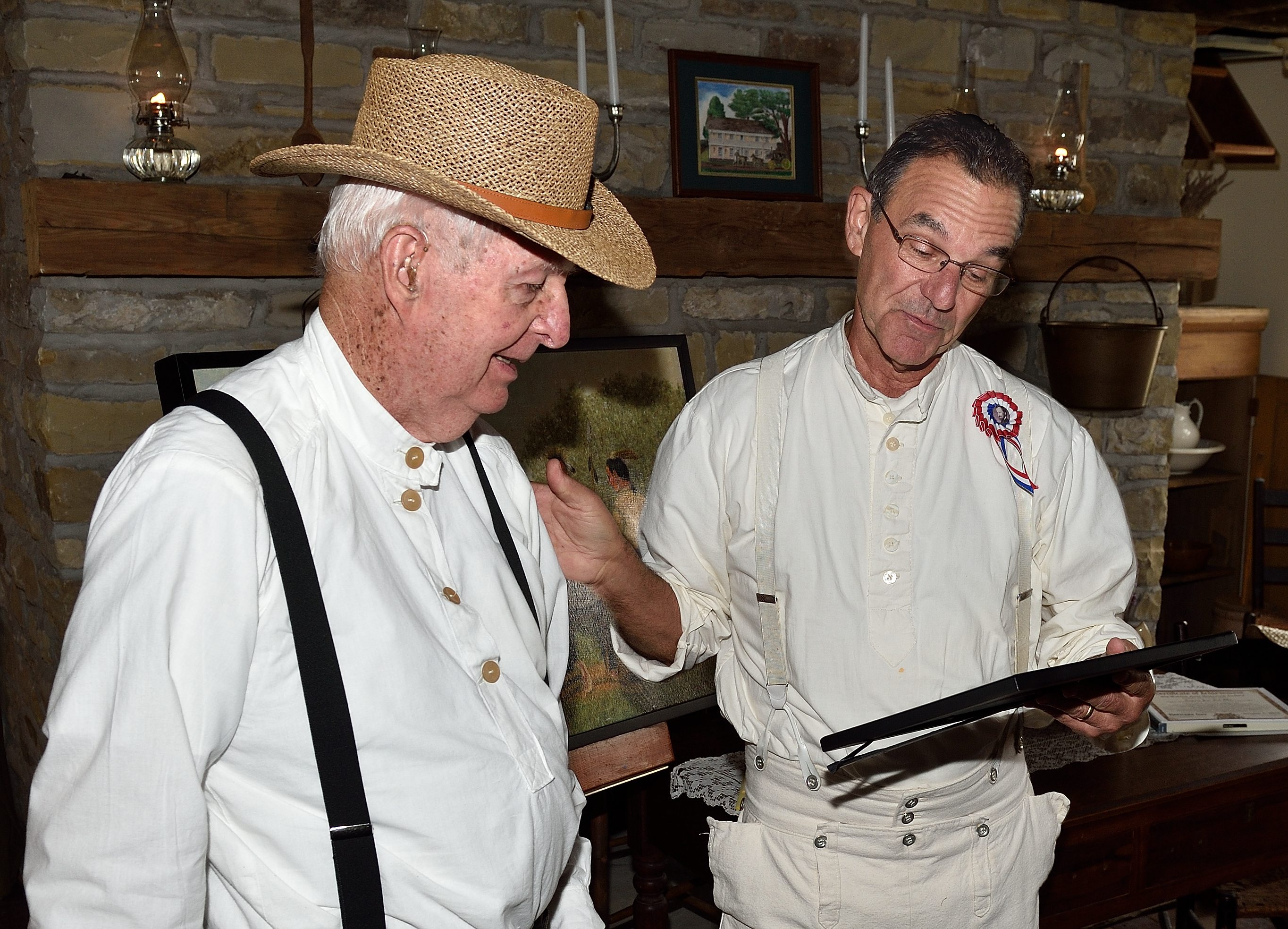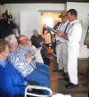 Due to cold windy weather, the pioneers displays and program were moved inside the Myers Inn. Roger Roberst did a first person monolog of Elias Lewis and Chief Leatherlips, Dave Martin played his guitar and sang favorite songs. It was crowded but fun. Rosie Frazier helped children play with early toys while Alice Chapan made soap on the porch. Cider and donuts were served.