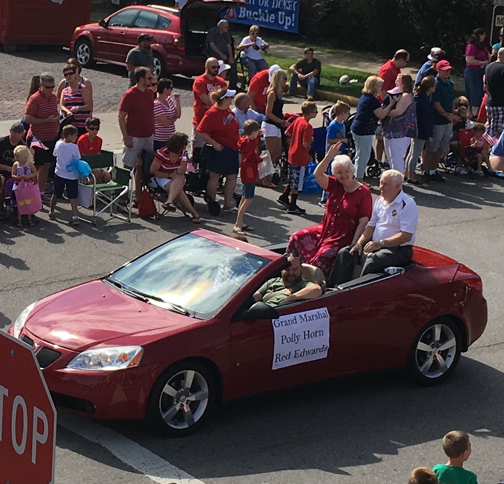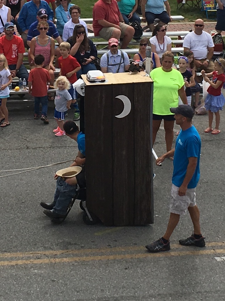 Marching Flag | Suzanne Allen on Sunbury Saddle & Halter 4-H Club Float | Ready for the Outhouse Race on Sunday | ||