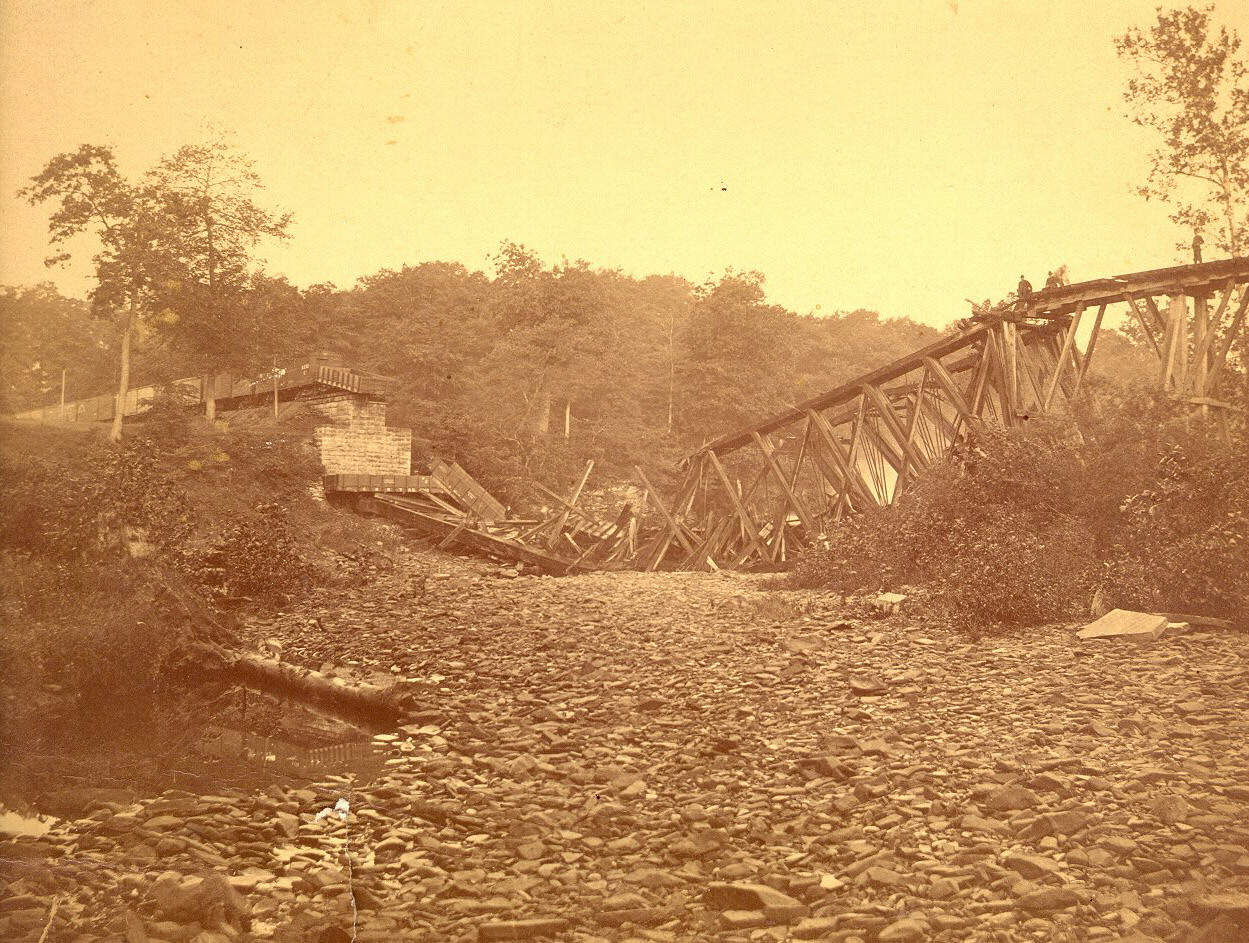 Another View of the 1878 Trestle Collapse with Part of Train Above at Left |