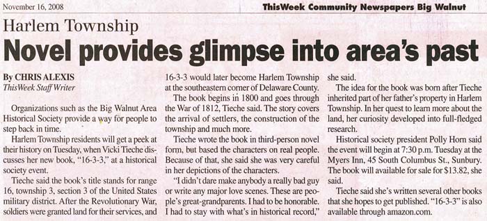 a novel of settling section 3 in Harlem Township Purchase in the Myers Inn Museum Gift Shop
