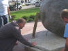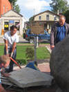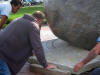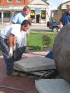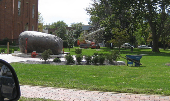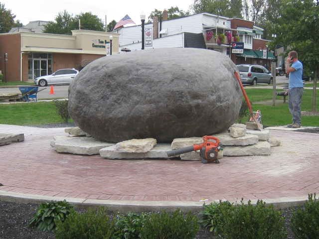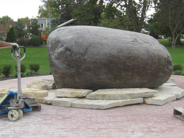 Work under the boulder is the same time as new roof it being added to Town Hall |