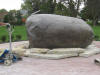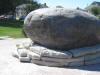 Flagstones makes the boulder appear to sit on a pile of rocks |