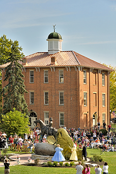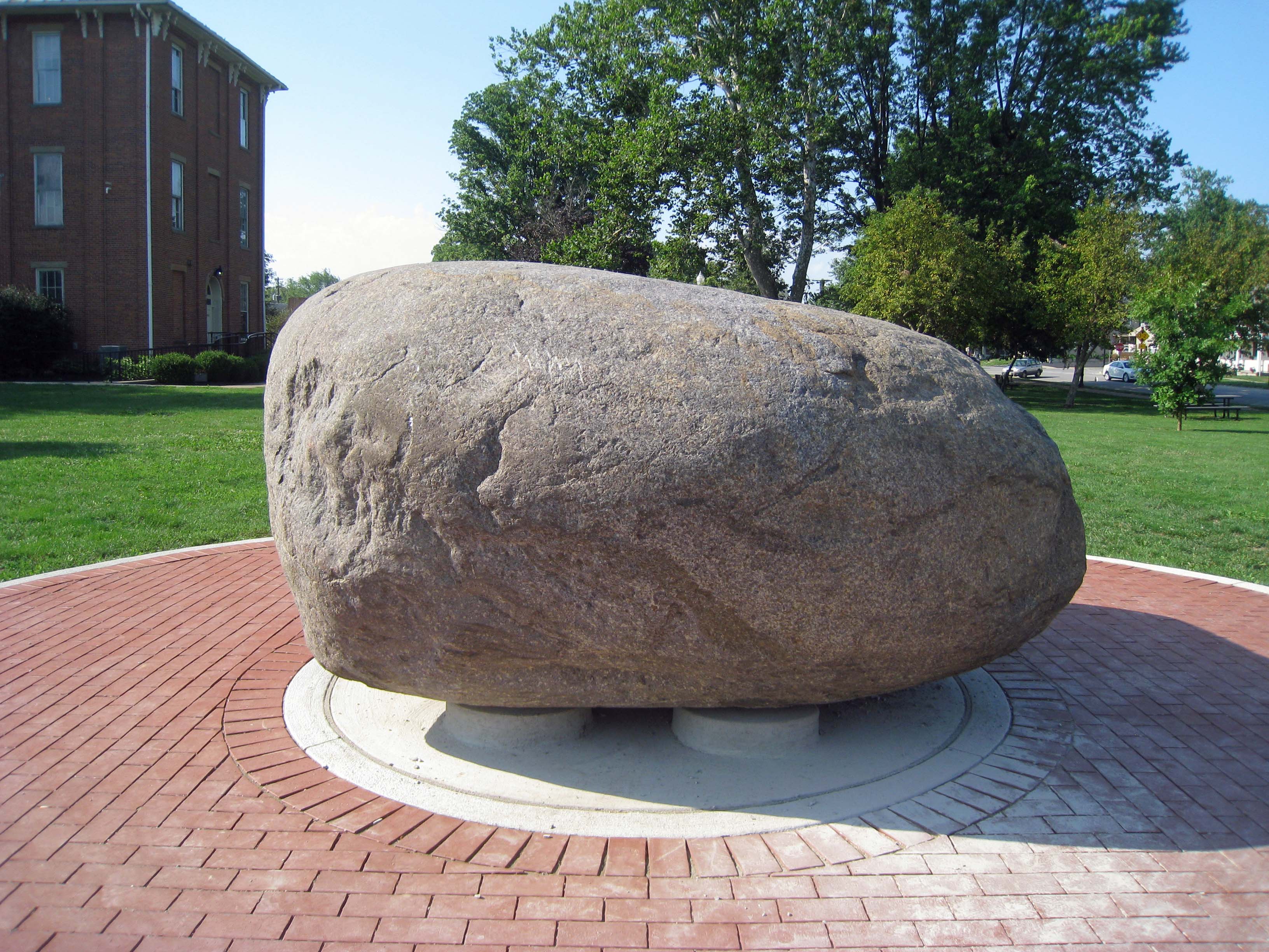 The statue is mounted on one of the five largest Glacial Erratics in Ohio which was moved to Sunbury Square in July 2012 for this purpose. It is fitting as the largest glacial erratic in Ohio is located just east of Sunbury off Hartford Road. |